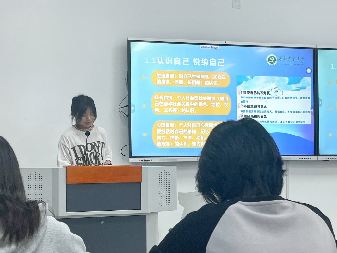 2023年10月31日晚,23级园林学硕班在襄阳书院12栋教学楼113教室举办 “认识自己、悦纳自己、保护自己”心理健康及防诈骗宣传主题班会,心理委员张欣茹主持宣讲,全体同学参会。