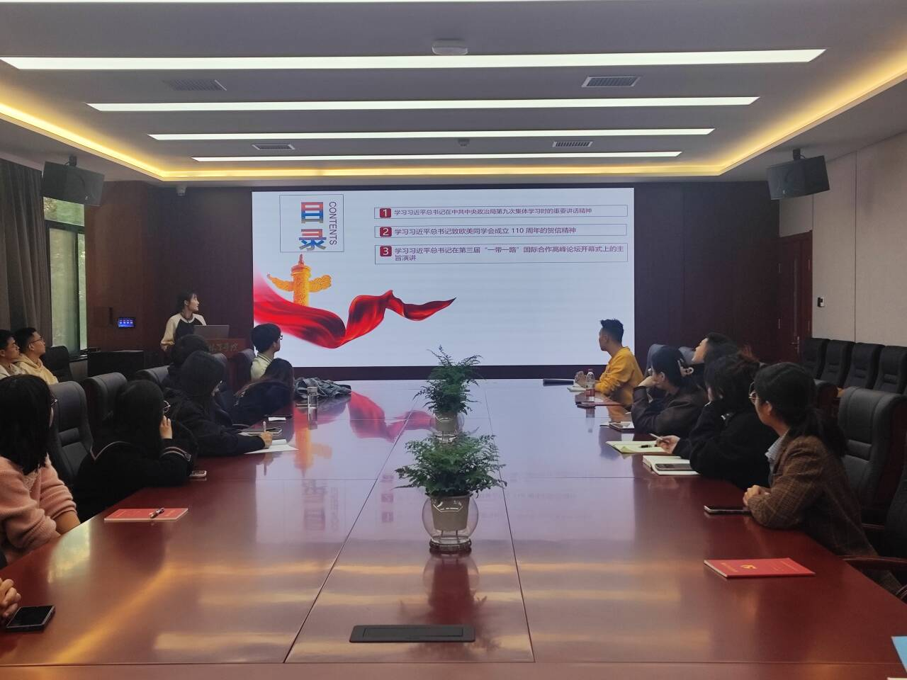 最后,全体成员共同学习了习近平总书记在第三届“一带一路”国际合作高峰论坛开幕式上的主旨演讲内容,并就演讲内容展开了讨论。