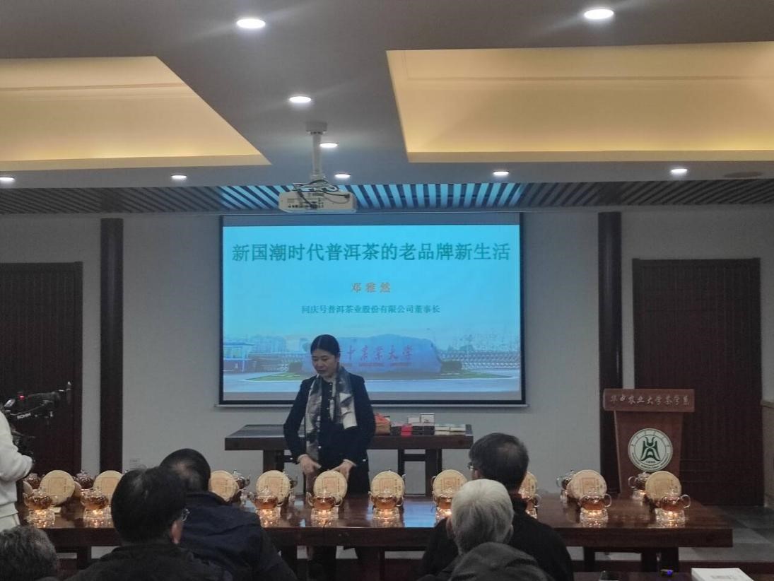 11月12日,德赢vwin体育官网登录“新国潮时代普洱茶的老品牌新生活”交流会在园林北楼226耕读茶室顺利开展。本次活动邀请了西双版纳同庆号普洱茶业股份有限公司董事长邓雅然。她将以自己的亲身经历讲述与普洱茶结下的深厚情缘,让同学们了解普洱茶的真实发展现状。在新国潮背景下,是如何将普洱茶老品牌融入当代年轻人的生活方式。
